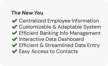 - Integration with Personal Data: Links banking details with employee personal information for convenience.