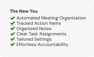 - Action Items and Task Tracking: Identify and manage action items, assignees, and deadlines to ensure task execution and accountability.