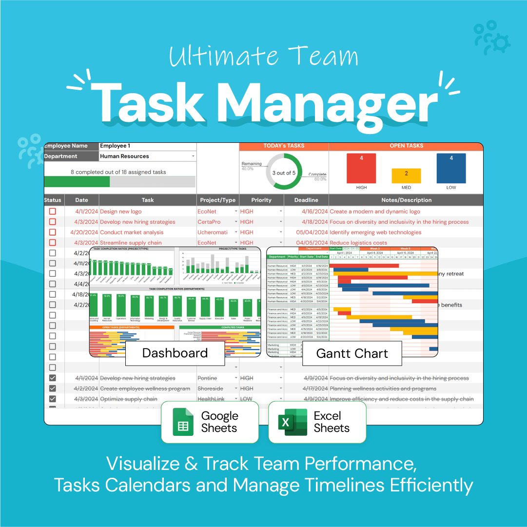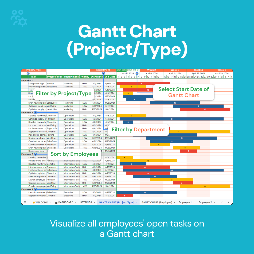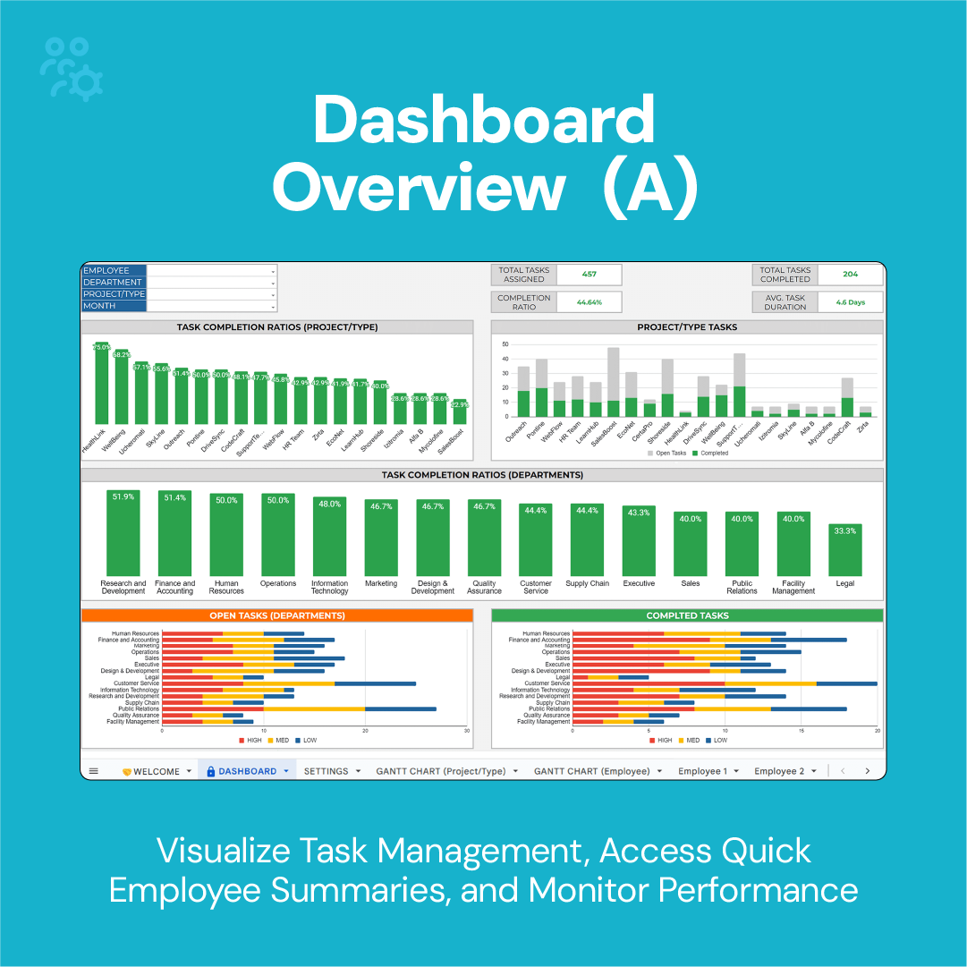 - Department Breakdown: See task distribution across departments for resource allocation.